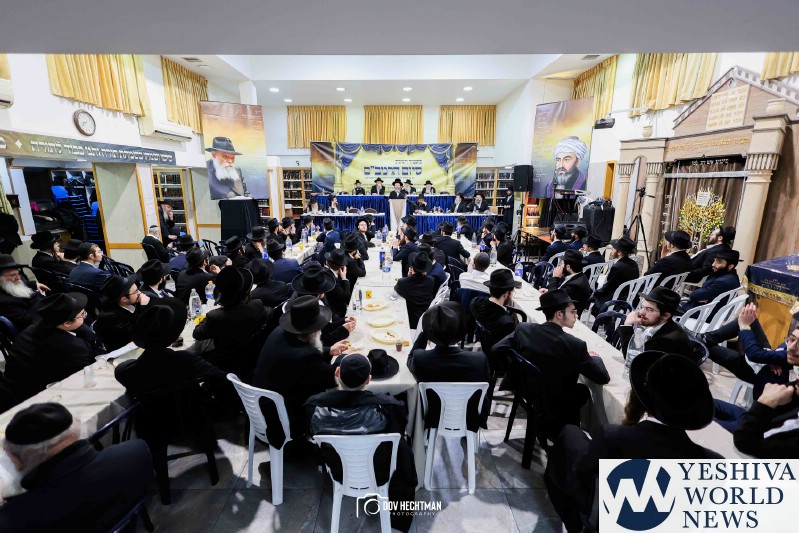 Chassidei Nadvorna on the eve of 7 Adar, for a special tish led by the Nadvorna Rebbe in honor of the yahrtzeit of his father, the Nadvorna Rebbe known as the “Be’er Yaakov,” zt”l. During the tish, the Rebbe marked the occasion with a Siyum HaShas and delivered divrei kodesh before the assembled chassidim, reflecting […]