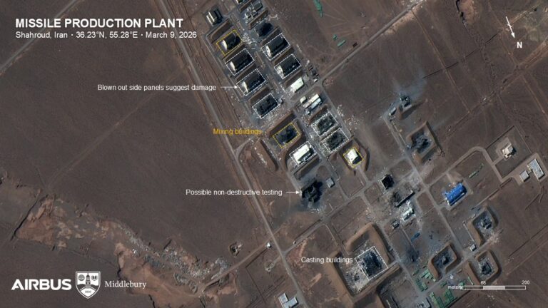Satellite images released Tuesday appear to show significant damage at key Iranian missile production sites following a series of Israeli airstrikes, offering a rare glimpse into the scale of the strikes deep inside Iran’s military infrastructure. The images, captured by the defense intelligence firm Vantor, show multiple buildings destroyed or heavily damaged at Iran’s Parchin […]