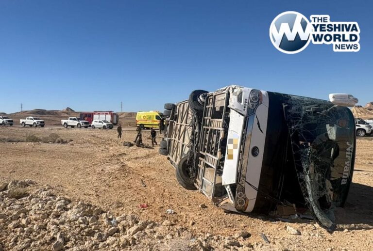 A bus transporting dozens of IDF soldiers overturned on Route 40 in the Negev on Wednesday morning, leaving 17 people injured. According to Magen David Adom, the driver and one