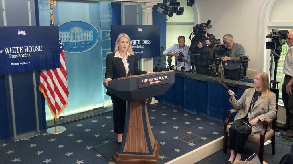 Karoline Leavitt speaks during a press briefing at the White House. Photo: Morgan Sweeney / The Center Square