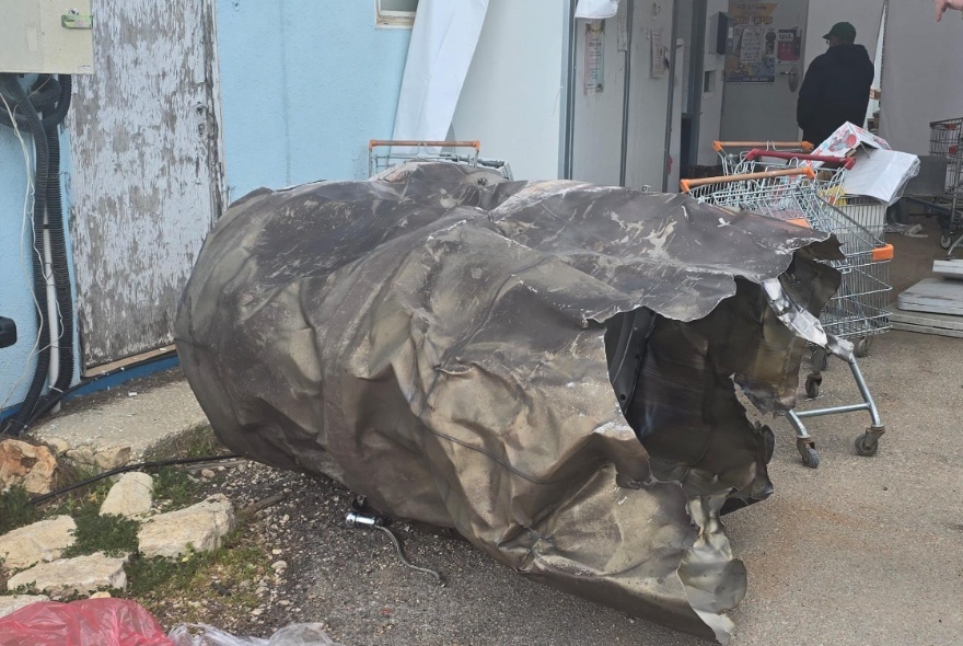 A neis occurred on the yishuv of Charasha in the Binyamin area when a massive Iranian missile fragment crashed near the yishuv’s makolet, just centimeters from nearby buildings.