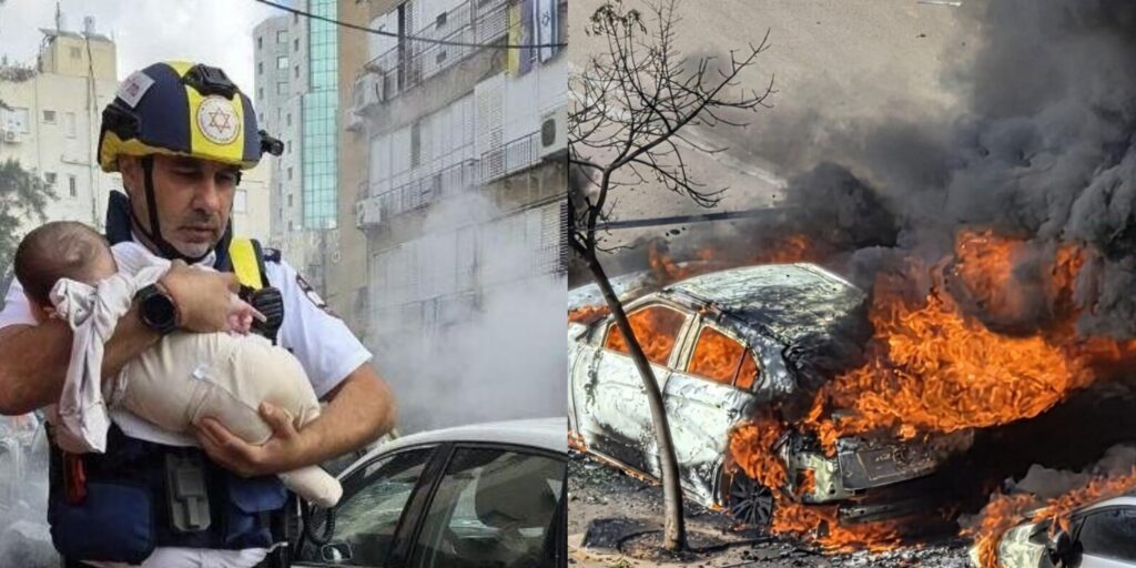 MDA paramedic Yehuda Shoshana described the scene at one of the impact sites in Bnei Brak: “When we arrived, we saw destruction in a residential building and a large commotion. We immediately began searches to ensure no one was trapped. During the searches, six lightly injured individuals came out of the building—two women and four children. We provided initial treatment on site, and three of them required further examination. We evacuated a six-month-old baby, a six-and-a-half-year-old child, and a woman around 40 years old.”